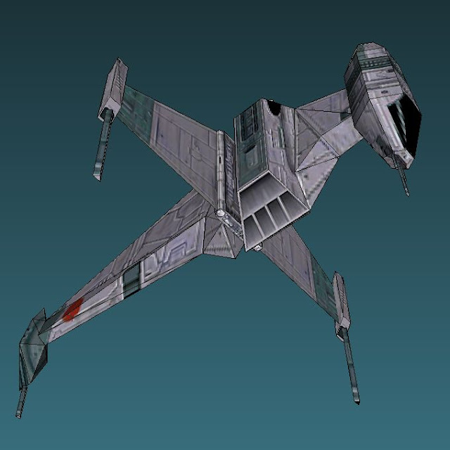 The B-wing starfighter first made its appearance in the Battle of Endor scene in Star Wars Episode 6, Return of the Jedi. StarWars.com describes the B-wing as "perhaps the oddest-looking starfighter in the Rebel Alliance". The template for this papercraft B-wing by Czech designer Goozi is available here (Pepakura PDO format only).Other papercraft by Goozi: